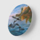 De uma pintura de óleo original de Brenda Thour de dois leões em um lago ao pôr do sol com um luo batendo suas asas. Copyright de Brenda Thour 2004.