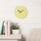 Relógio de Parede das Mini Bolinhas, bonito e moderno. Este design apresenta bolinhas de círculo pequenas em amarelo e branco. O texto pode ser adicionado a esta design para lhe dar um toque pessoal.