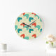 Relógio moderno de Médio século. Padrão retrô. Cores em vermelho e turquesa.