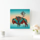 Este é um único "Um dos tipos" Relógio de Muro de Buffalo Sudoeste! Ele apresenta um Buffalo Sudoeste ou Bison e Sol em um Fundo Turquesa e Laranja! Design De Arte Original Pelo Artista Kerry Miller.