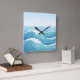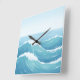 Um relógio de parede minimalista inspirado no oceano com ondas de aquarela azul e branca. Perfeito para casas de praia e interiores relaxantes