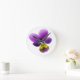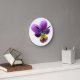 Este relógio maravilhoso apresenta uma fotografia muito detalhada de uma flor de pansy selvagem, tirada usando macro fotografia. A flor é roxa com um centro amarelo.