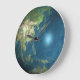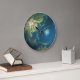 Nosso planeta Terra como um design de relógio com números em textura de metal de pavão - que tal ter o mundo como um globo na sua parede para contar o tempo?