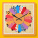 Um relógio colorido brilhante e padronizado, com ousadia, fácil de ver números negros. Projetado em um padrão circular tradicional de blocos de colcha circular de "Prata Dresden", ricamente estratificado com matizes roxos e laranja. Veja muitos outros relógios temáticos nesta coleção no Clock O Rama no Zazzle.