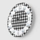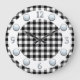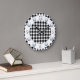 Este design combina o tradicional (padrão de cheque) com o moderno (face do relógio prateado). O fundo é uma verificação a preto e branco, com um anel branco. As camadas no topo do anel são números prateados para os doze, três, seis e nove. Os números restantes são indicados por pontos prateados.