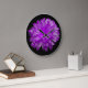 Este relógio maravilhoso mostra uma fotografia de uma flor de marigold que foi manipulada para criar uma bela flor com pétalas roxas espantosas. O fundo é preto para mostrar a beleza da flor ao máximo.