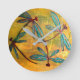 Lindas libélulas metálicas coloridas em um fundo dourado lavado. Que melhor maneira de ver o tempo voar do que com esta linda libélula inspirou um relógio de parede.