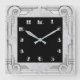 Eu tinha originalmente feito este design de Arte Deco para outra coisa, mas eu também acho que ele faz um relógio de excelente também. Este relógio tem um estilo prateado com interior quadrado preto para os números do relógio. Isto faz um relógio encantador para qualquer casa.