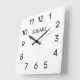 Relógio de parede quadrado com design de mostrador moderno. Personalize com nome ou texto personalizado. Design minimalista preto e branco. Carregue a sua própria foto opcionalmente. Ótimo relógio para casa, escritório, hall, clube e mais.