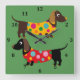 Relógio verde quadrado com Dachshances e números pretos. Obrigados para a Creative Fabrica para alguns dos elementos na design.