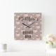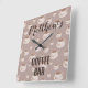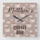 Perfeito para a área de fazer de café da sua cozinha este relógio de parede quadrada, com grãos de café e xícaras são personalizados com o seu nome.