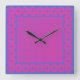 Relógio de Parede Quadrado, Magenta: Pontos Azuis
