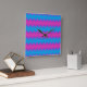 Um Relógio de Parede na moda quadrado com um padrão ousado, ziguezague de cavaleiros magenta, roxo, azul brilhante e turquesa. Parte da coleção Posh & Painterly 'Magenta Magic'.