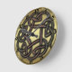 Nó Celta De Ferro Escuro Nó De Parede Redonda. Um bronze como um nó celta sobre fundo de ouro. Os nós celtas são uma antiga forma de arte tradicional celta normalmente caracterizada por não ter início e fim. Eles simbolizam o amor eterno e o ciclo de vida interminável. Encontraram-se como um símbolo favorito em muitas culturas e civilizações variadas, e com muitos praticantes de magia ou misticismo hoje em dia.