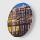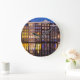 Large Round Wall Clock com uma fotografia do edifício Amesterdã à noite