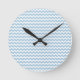 Um relógio de parede na moda, com um padrão de cavaleiros azuis e brancos.