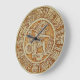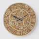 Desenho de relógio de parede redondo inspirado em glifos astecas maias antigos encontrados nas ruínas do México. Loja WitchesHammer, Virginia Vivier, designer do relógio.