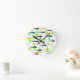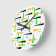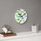 Este relógio retroativo é coberto por triângulos modernos do século médio de laranja, azul, preto e cinzas.