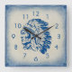 Silhueta azul de um Chefe Indígena Americano rodeado por uma adorável e desbotada armação azul vintage.