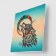 Este é um Relógio de Muro Tribal "Um dos Tipos"! Ela apresenta um lobo tribal a uivar na lua num fundo de turquesa e laranja!