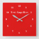 Relógio de Parede Vermelha com Texto Personalizado