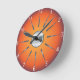 Um na moda clássico adicionado à sua parede que também é funcional! Este relógio de parede tem um fundo laranja vermelho que sugere cores de folha de outono com ouro metálico ilustrado e sotaques prateados. Um presente de feriado de barato excelente para casa ou escritório.