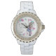 Relógio De Pulso Alice Wonderland, Rhinestone White Enamel