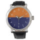 Você vai gostar deste clássico relógio de na moda com um rosto azul-alaranjado e escuro.