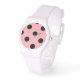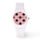 Brilhe seu mundo e sorria com um relógio da coleção de Bolinhas de Manor Hill - bolinhas pretas em um rosto de relógio cor-de-rosa.