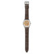 Um belo biscoito de chocolate em um relógio de couro marrom.