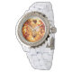 Observador branco de esmalte de rocha feminino com uma imagem de uma citrina laranja deslumbrante. Consulte botão redondo correspondente, charme redondo, brincos soltos, chaveiro de metal giratório e colar redondo. Veja a coleção inteira de Gemstones & Medallions Watch na seção ACESSORIES.