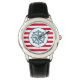 Design náutica com decoração de bússola em fundo listrado vermelho e branco