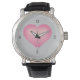 Este relógio de pulso apresenta um coração cor-de-rosa moldado com um centro lavado em branco. Clique em "Personalizar" para redimensionar/reposicionar a imagem do coração desvanecido rosa, alterar a cor de fundo e/ou adicionar personalizar o estilo de fonte, o tamanho ou a cor dos números de rosto da observação. Escolha o estilo e a cor da banda de observação. Presente de Dia de os namorados excelente.