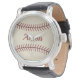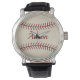Um estilo vintage de decoração de beisebol adorna este relógio elegante. O design é baseado em arte original.