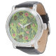 Relógio De Pulso Desenho da Fruta tropical sobre padrão verde