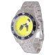 Dogge com bricas brancas num relógio, modelos diferentes preto disponível.