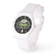 RELÓGIO DE PULSO FLOR BRANCO DE ENAMEL IMPRESSO, PÉROLAS E DIAMANTE