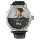 Este relógio moderno é um presente ideal para um formando de Segundo grau, de faculdade ou de universidade. Ele apresenta uma imagem do formando na metade superior e no ano da classe na metade inferior. Design que faz um excelente guardar o saquinho por anos.
