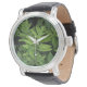 samambaias verdes e peludas da floresta do rosto deste relógio