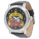 Churrasco sobre carvão inflamável, faixa de rolagem com texto personalizado sobre garfo e espátula. Cor de fundo personalizada.