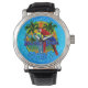 Estou na Ilha Time trabalho de arte e designs. O tempo das ilhas é uma referência de como a vida é nas ilhas, as pessoas são mais aptas a retardar e a aproveitar a vida. Preferencialmentes do que a corrida normal de ratos em que vivemos na terra principal. Belo pôr do sol da praia atrás de pranchas de surf e palmeiras, enquadrado com flores de bambu e hibisco. E um papagaio de arara colorido.