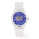 Damas de Flor primavera assistem imagem de espelho das flores de primavera em um fundo azul.