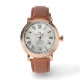 Relógio de Pulso de Couro Marrom e Ouro Rosa para Homens | Presente Personalizado de Números Romanos em Mármore para Marido ou Noivo.
