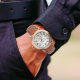 Relógio de Pulso Masculino de Couro Marrom e Doura