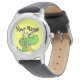 Relógios bonitos para crianças que podem ser personalizadas. Um design de crocodilo giro e um lugar para adicionar seu próprio texto em um fundo amarelo. As crianças vão amar o seu próprio relógio personalizado.