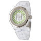 Relógio De Pulso Monograma Citrus Green Chevron Patterno