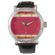 Você fará uma declaração de moda vestindo este relógio vermelho, amarelo e branco.