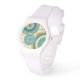 © Verique Charron / Wild Apple. Esta imagem de padrões circulares apresenta cores azuis e douradas. A imagem tem um fundo cor de bronzeado, com padrão floral.