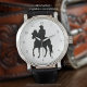 Celebre Paso Fino com este elegante relógio com um cavalo em greve e uma silhueta de cavaleiros. Projetado para amantes de cavalos e estilos de vida equestres, este relógio adiciona um toque de sofisticação rústica a qualquer equipamento. Ideal para o veste diário, eventos de celeiro, ou estilo ocidental casual, é uma forma eterno de honrar a raça Paso Fino.