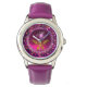 RELÓGIO DE PULSO PINK PURPLE FLORAL COROWN DOURADO BOTTERFLY, GEMST